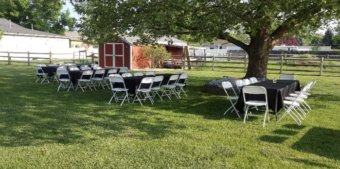Our tables and chairs at an event at Julius M. Kleiner Memorial Park